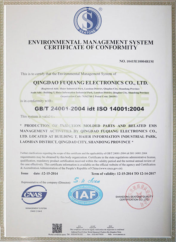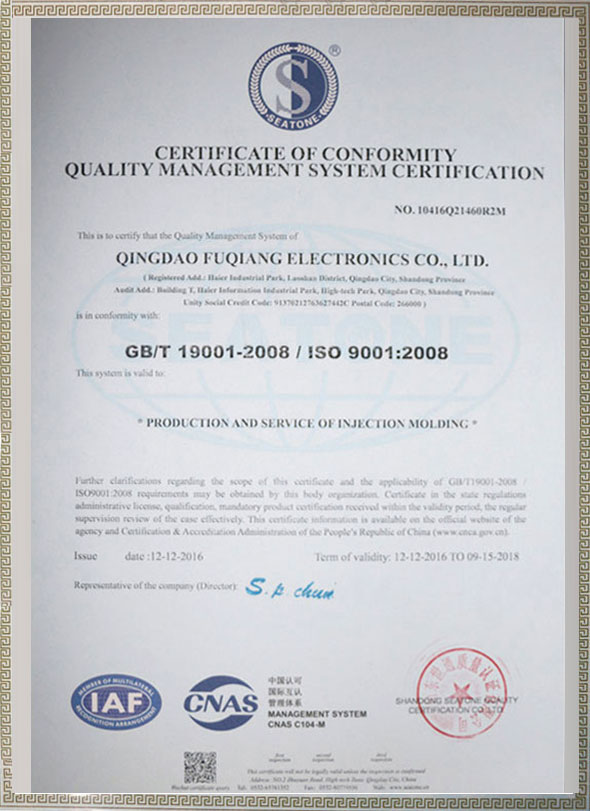 富強(qiáng)先后通過了ISO9001、ISO14001、QS等環(huán)境與質(zhì)量管理體系認(rèn)證。